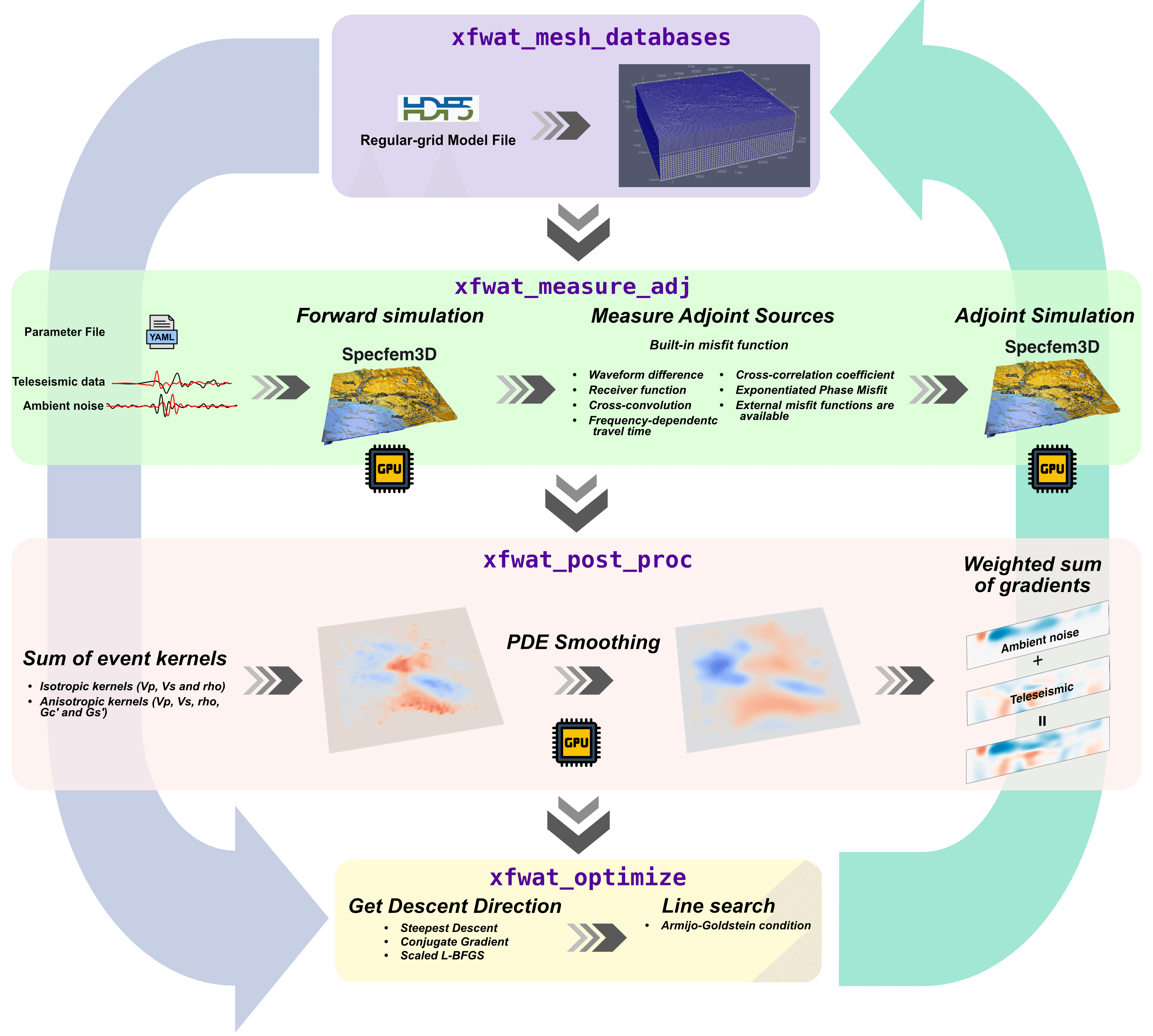 The SpecFWAT Intergated the typlical FWAT workflow in a 4 execuable files, which includes: